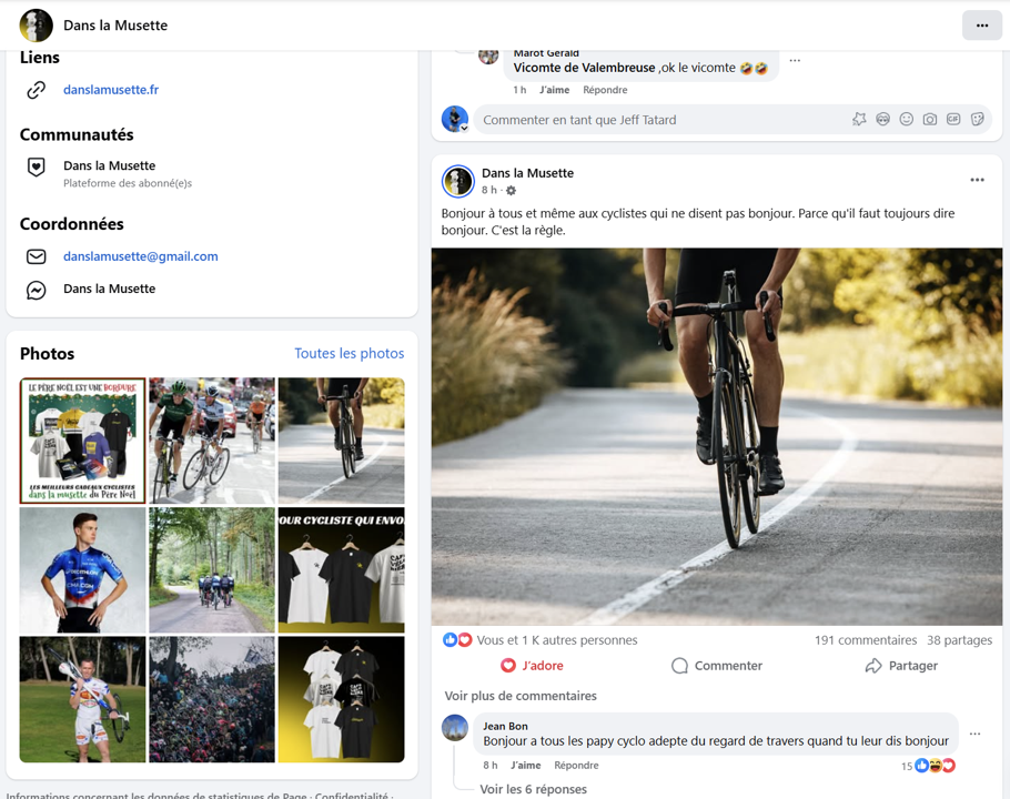 Le vélo, c’est un monde magique : deux roues, un peu d’air, du souffle, des cuisses qui protestent discrètement, des paysages, et parfois même un café filtre dans un coffee bike shop au prix d’un pneu tubeless. Et au milieu de cette poésie roulante, il existe un mystère plus profond que l’aérodynamisme des poils de bras : les cyclistes qui ne disent pas bonjour. Oui, eux. Ces ombres silencieuses du bitume, ces ninjas de la non-politesse, ceux qui passent à 34 km/h sans lever un doigt, un sourcil, une narine. Rien. Le néant social. On dirait qu’ils jouent à « Qui sera le plus muet du peloton ? ». Et puis un matin, dans cette jungle de carbone et de cuissards compressifs, Eddy Ficelle, alias le génie de la casquette Dans la Musette, poste un message simple sur son Facebook, beau, presque philosophique : « Bonjour à tous, et même aux cyclistes qui ne disent pas bonjour, parce qu’il faut toujours dire bonjour. C’est la règle. » Et là, tout s’illumine chez 3bikes. On se dit : Oui, bon sang, il a raison. Pourquoi est-ce si compliqué de dire bonjour ?