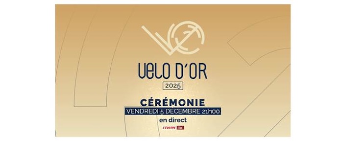 Vendredi 5 décembre à 21 h, vous pourrez en direct et gratuitement la cérémonie du Vélo d’Or™ 2025 sur L’Équipe live (site L’Équipe, application mobile et TV connectée).