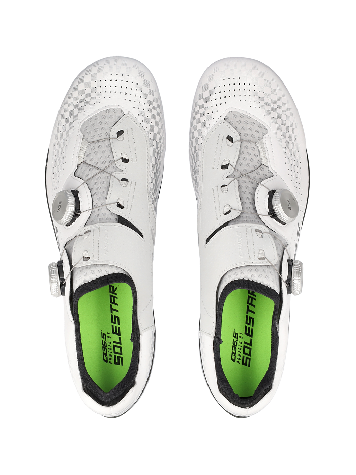 La Unique Pro 4.0 de Q36.5, conçue pour être utilisée en toutes saisons, conserve les caractéristiques distinctives de la marque (thermorégulation, confort supérieur et ajustement précis) tout en introduisant une innovation technologique : une semelle en fibre de carbone fabriquée à la main, la plus fine au monde, actuellement en cours de brevet. Elle est également dotée d’une zone métatarsienne plus large, qui optimise l’ajustement et améliore encore le confort. La Unique Pro 4.0 offre un transfert de puissance optimisé grâce à un stack height réduit à seulement 4,4 mm, ce qui contribue à une plus grande efficacité de pédalage.