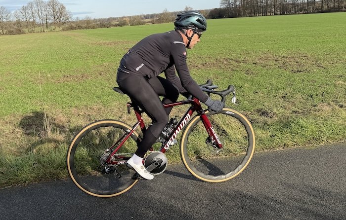 Mais le vrai coup de maître, c’est le rendement. Avec une ligne de chaîne recentrée pile au milieu de la cassette, les frottements inutiles et les pertes d’énergie sont fortement limités. C’est comme si votre pédalage avait été recalibré par un ingénieur suisse : plus fluide, plus efficace. Le bruit aussi a presque disparu. Beaucoup moins de ce clac-clac agaçant qui vous fait passer pour un mécano débutant. Le groupe SRAM Force AXS en mono ronronne comme un chat repu, laissant place au seul son des pneus qui mordent l’asphalte. Et j’ai constaté la même chose sur un groupe Rival AXS monté sur un vélo de test. J’aime bien.