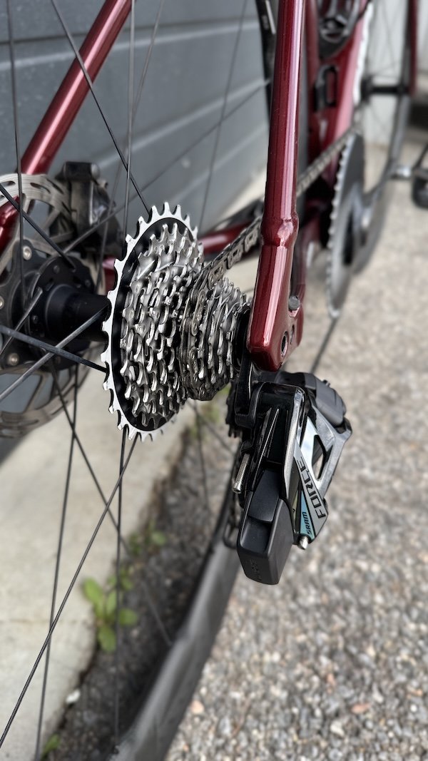 Mais le tout premier avantage que j’y voie, c’est l’utilisation optimale de la cassette. Sur une sortie classique de 80 km en plaine avec un dénivelé raisonnable de 600 à 700 m, je peux exploiter quasiment tous les pignons d’une cassette 12 vitesses bien étagée. Contrairement au double plateau, où certains pignons prennent la poussière éternelle (vous savez, ceux conçus pour la « polyvalence » mais jamais touchés, comme ce costume trop chic au fond de votre armoire), ici, tout sert.