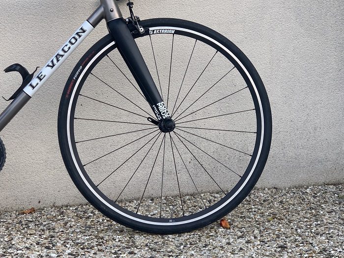 Depuis les premiers kilomètres effectués avec les roues du test, les choses ont bien évolué, y compris au niveau des vélos et des roues à patins. Aujourd’hui, les jantes utilisées lors du test ne sont plus disponibles mais évidemment Wheel Mastery propose l’équivalent moderne (en termes de comportement dynamique) allant avec l’augmentation des sections des pneumatiques. En effet, les roues montées à présent pour un même cahier des charges, utilisent des jantes en 22 mm de large (externe), ce qui ajoute un peu de poids – et de rigidité – sans compromettre le confort puisque le volume d’air est augmenté et donc la pression réduite. Par ailleurs dans cette gamme de prix, Wheel Mastery utilise plutôt des moyeux Hope à la qualité reconnue et toujours les rayons CX-Ray. Ceci aboutit à un montage complet pour un montant de 875 € (contre 790 € pour les roues du test). Dans tous les cas, le budget reste moindre que pour un montage de même niveau de gamme, mais avec des jantes en carbone.