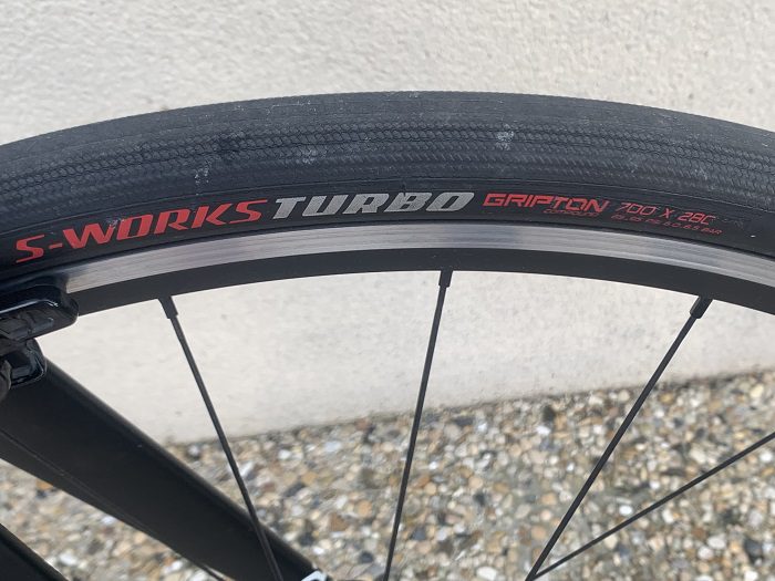 Dans le cas présent, j’avais précisé à Benoit quelles étaient mes attentes par rapport au montage dédié pour un Specialized Tarmac S-Works SL6 à patins, dont je trouvais le comportement trop chatouilleux en descente avec des jantes en carbone de 40 mm. La stabilité devenait alors potentiellement problématique, surtout quand le vent était de la partie. Une caractéristique probablement liée à la taille du vélo (61 mm) et au fait que Specialized redresse de façon importante l’angle de direction justement en grande taille (74° en l’occurrence) au bénéfice de la maniabilité mais au détriment justement de la stabilité.