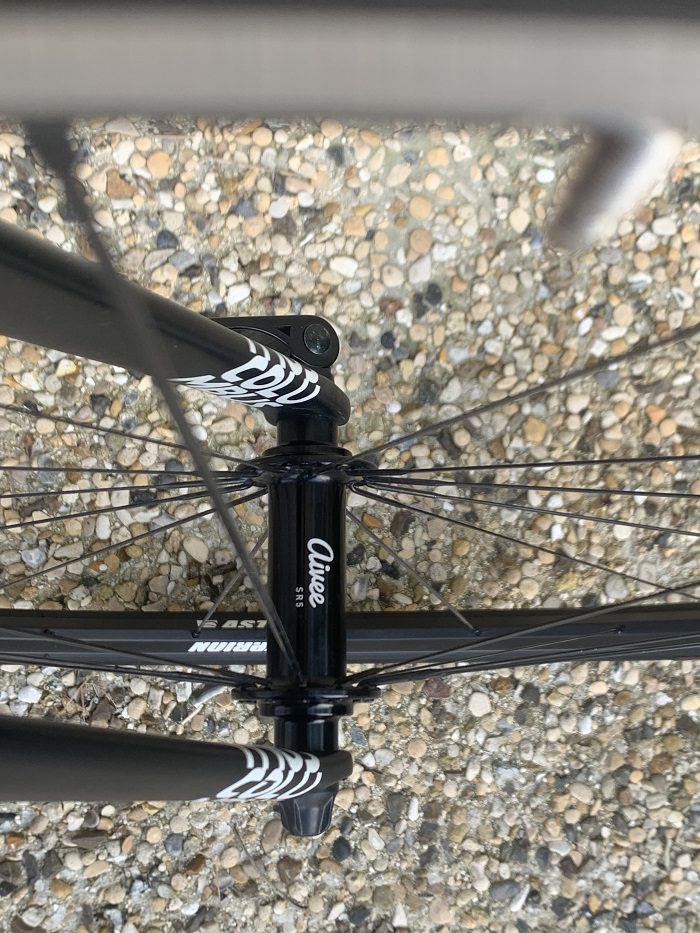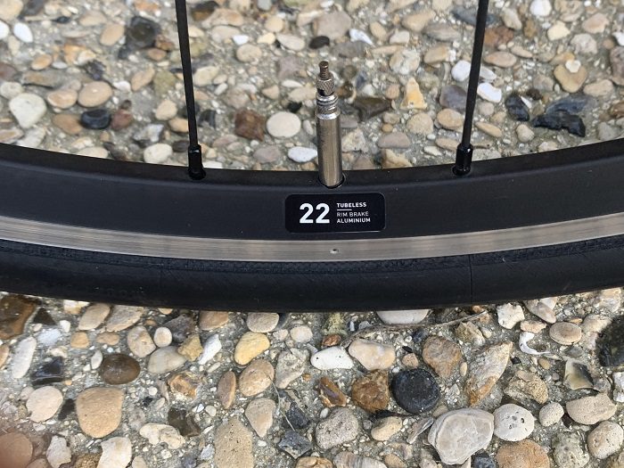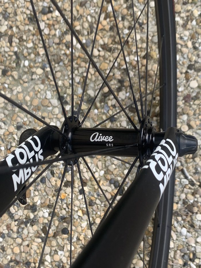 Les roues ainsi montées sont arrivées avec 1371 g sur la balance, fonds de jantes inclus. En largeur externe, les « anciens » standards ont été de mises avec une largeur externe de 18 mm seulement et une hauteur de 22 mm, rendant les roues assez désuètes esthétiquement parlant d’autant qu’elles s’accommodaient généralement de pneus au profil de 23 à 25 mm. Et même avec un pneu de 28 mm comme à l’avant pour le test (l’arrière étant resté en 25 mm pour des raisons d’espace devant le tube de selle), le volume engendré par les pneus n’est plus au goût du jour. Les moyeux sont les excellents Aivee, réputés légers et durables.