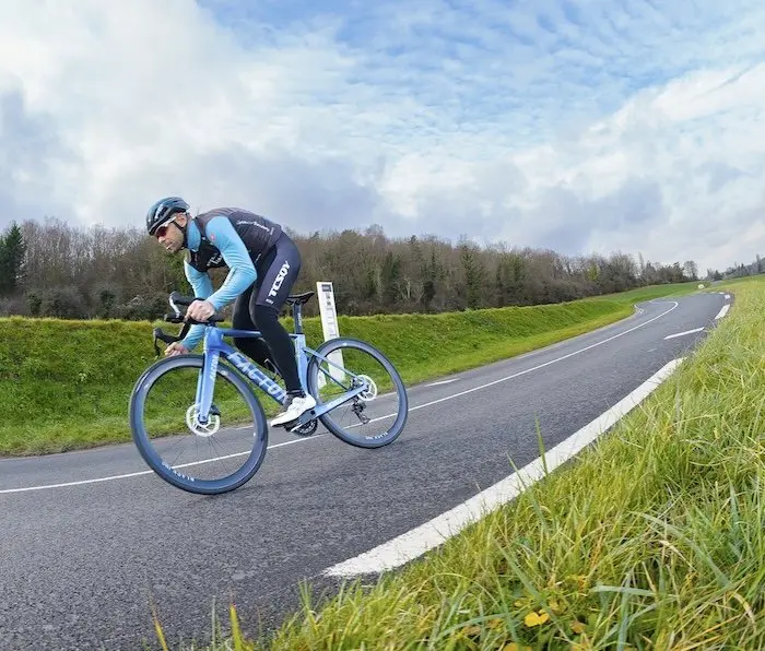 Le poids de 8,2 kg sans pédales pour le Monza testé est plutôt élevé dans l’absolu, surtout pour un vélo vendu 8 299 €. Et c’est son principal point faible, même en tenant compte du rangement intégré, qui alourdit forcément le cadre. Pourtant, ce chiffre brut décrit mal la réalité sur la route. Car l’aérodynamique, le comportement d’ensemble du cadre et la qualité d’intégration jouent un rôle essentiel dans la façon dont le vélo se comporte. Et c’est là que le Monza déjoue les pronostics.