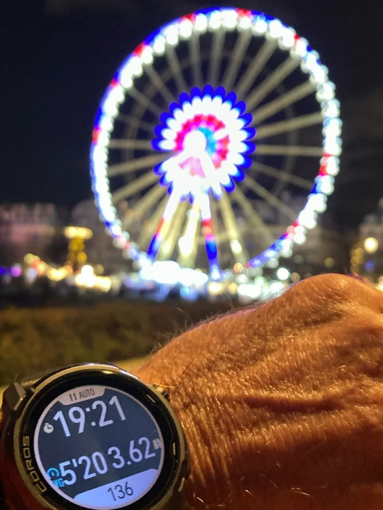 Courir la nuit à Paris, c’est le test ultime. Immeubles, quais, ponts, réflexions de signal. La montre accroche rapidement. Christophe s’élance. Onze kilomètres plus tard, la trace parle d’elle-même. « Le GPS est fiable. Vraiment fiable. Là où certaines montres hésitent, ici c’est net. »