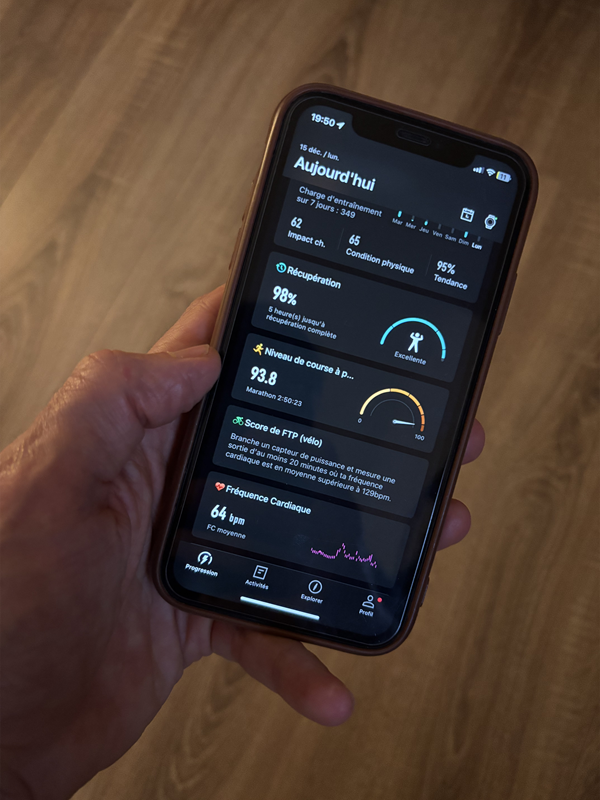Le cardio suit, sans affolement. « Les données sont cohérentes avec mes sensations. C’est ce que je demande. »
