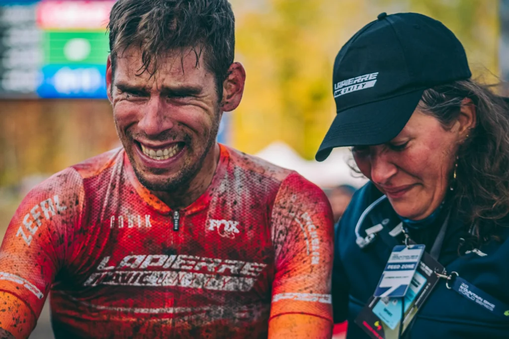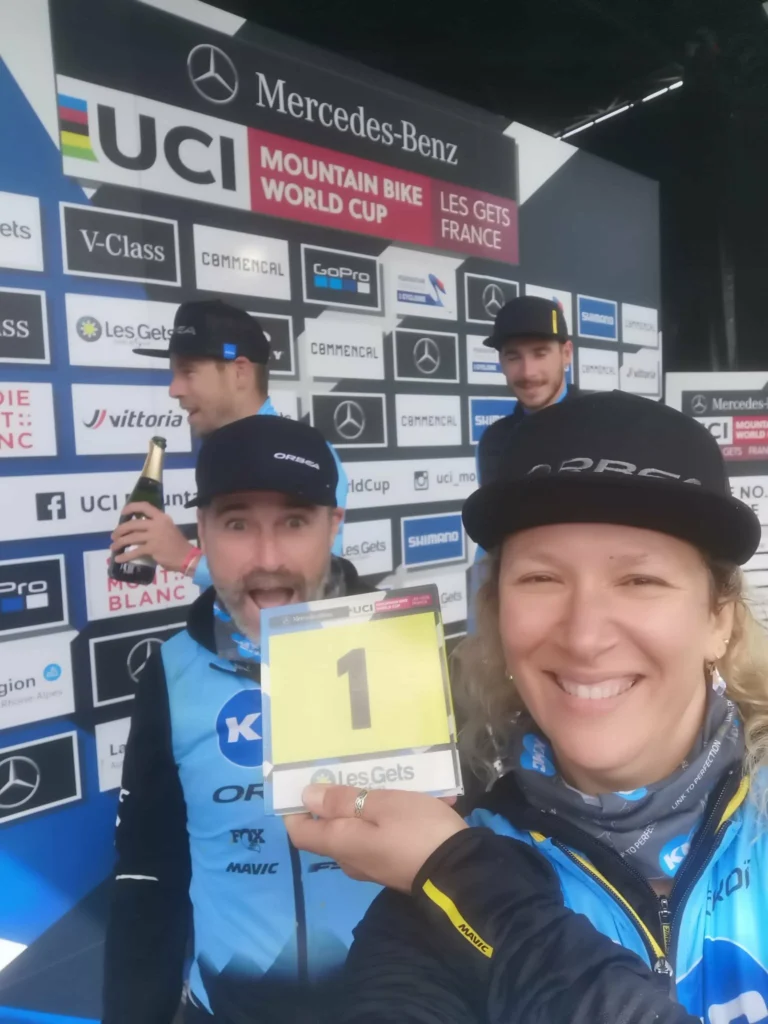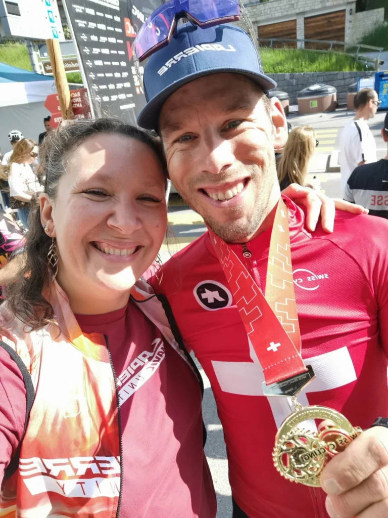 Elle cite aussi Thomas Litscher, le maillot de champion de Suisse en short-track. Une performance immense quand on connaît le niveau exceptionnel qui existe en Suisse, la densité de coureurs, la culture du VTT, et la difficulté presque brutale d’y décrocher un titre national. Ce maillot-là ne se gagne jamais par hasard. Thomas est un athlète extraordinaire, capable de très hauts comme de très bas, d’intensités rares, de fragilités assumées. Ce jour-là, c’est toute une trajectoire qui s’aligne. Et pour Céline, ce moment reste gravé comme un souvenir fort, sincère, pleinement vécu.