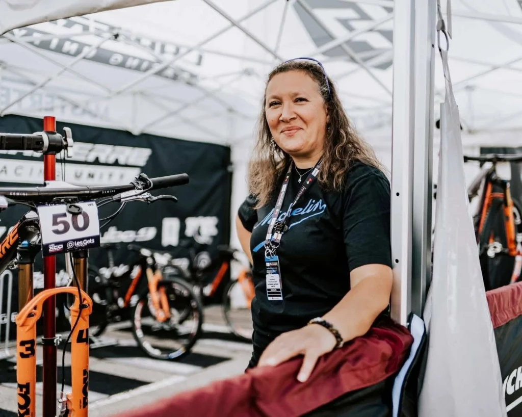 Elle parle du fait d’avoir été la seule femme cheffe d’entreprise à diriger un team pro de VTT de A à Z. Elle dit ne s’être jamais posé la question parce qu’elle était une femme. Elle faisait ce qui lui plaisait. Puis elle a réalisé.