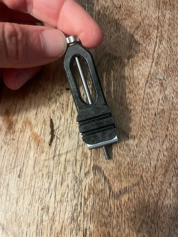 Fabriqué en polymère renforcé de fibres de carbone et visserie en titane, l’outil allie légèreté et durabilité. Il peut aussi servir de bloc de purge, pratique pour l’entretien courant des systèmes hydrauliques. Avec seulement 12,5 g, il trouve sa place sur l’établi ou dans un sac à dos, pour rester autonome lors de longues sorties ou voyages. Son usage n’est pas quotidien, mais il permet de travailler proprement sur des composants coûteux.