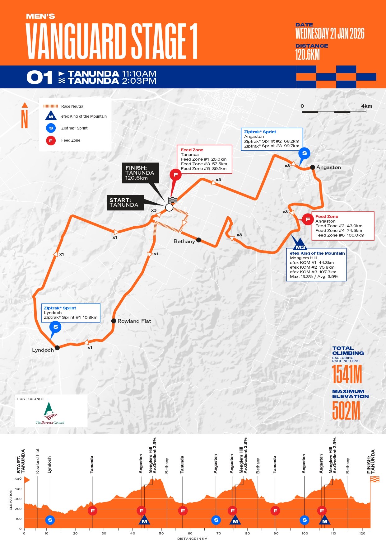 Étape 1 – Mercredi 21 janvier – Tanunda / Tanunda (120,6 km, 1 541 m D+)