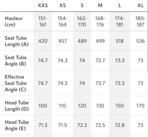 En taille S, le vélo est équipé de manivelles de 170 mm et d’une potence de 110 mm, un centimètre de plus que celle que nous utilisons habituellement. Cependant, il y a des bagues de rehausse et nous n’en avons pas sur notre Cinelli Pressure personnel. On va dire que l’un compense l’autre. Le site Internet de la marque propose un outil de calcul de taille de cadre en fonction de votre propre taille. Nous l’avons testé en entrant 173 cm – notre taille – et il propose un cadre en M, ce qui serait bien trop grand pour nous. Méfiez-vous donc de cet outil et préférez faire votre choix selon vos critères habituels.