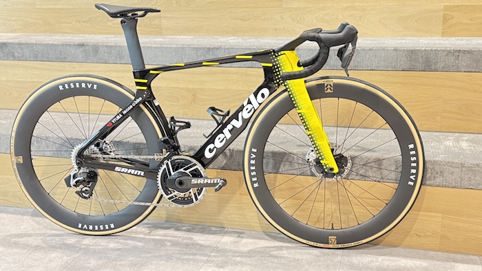 En 2026, le Team Visma | Lease a Bike poursuit sur la voie de la stabilité en conservant une configuration technique identique à celle de la saison précédente. Les coureurs s’appuient toujours sur la gamme Cervélo, avec le S5 pour les courses rapides, ou le R5 pour la montagne et le P5 pour les contre-la-montre. L’équipement reste inchangé avec les groupes SRAM Red AXS et les capteurs de puissance Quarq, associés aux roues Reserve et aux pneumatiques Vittoria. Selles Prologo, postes de pilotage Cervélo, pédales Wahoo Speedplay, compteurs Garmin et porte-bidons Tacx complètent un équipement taillé pour la performance et la régularité au plus haut niveau du WorldTour.