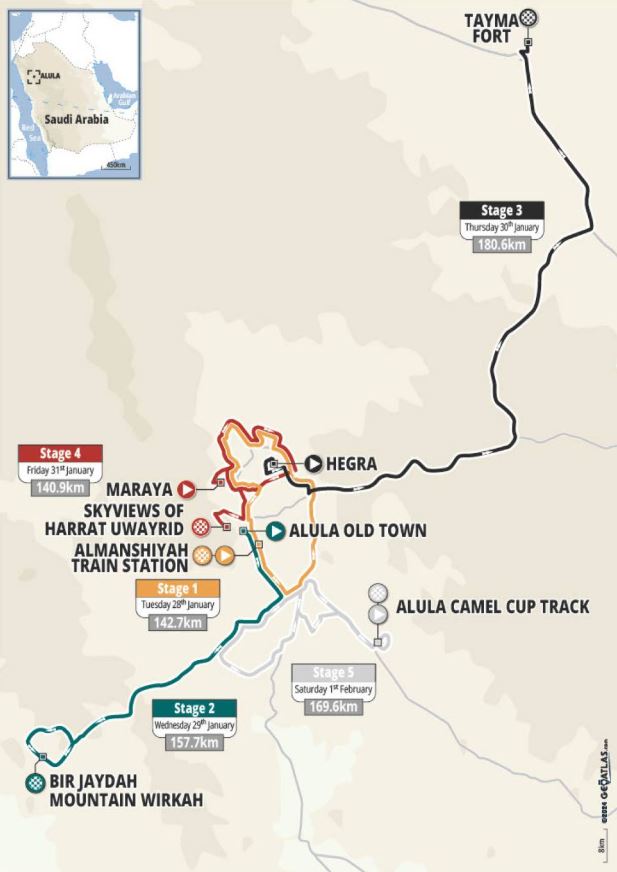 La carte et le profil des étapes de l’AlUla Tour 2026