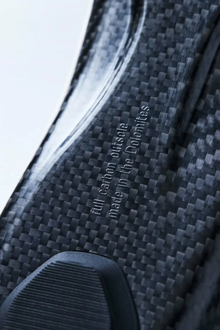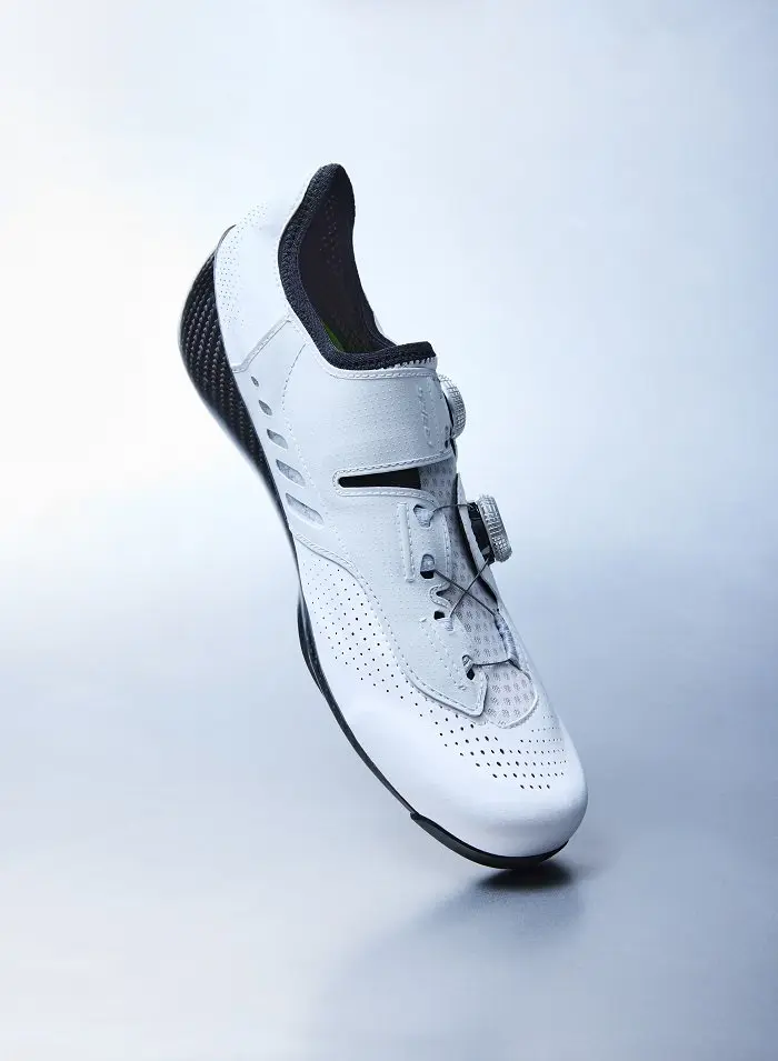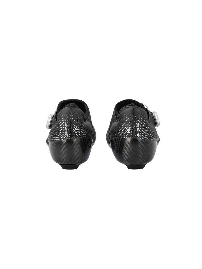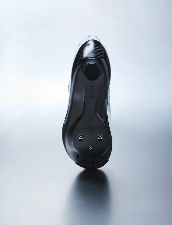 Ainsi pour ce nouveau modèle qui vient se placer tout en haut de la hiérarchie de la marque, les technologies employées ont concerné l’amélioration de la stabilité du pied, de la transmission de puissance et du confort. Au cœur même du projet figure la réduction de la hauteur totale de semelle à 4,4 mm (avec une épaisseur de la semelle carbone seule de 2,2 mm), soit l’une des plus réduites du marché. Selon des études récentes, Q36.5 précise que chaque millimètre de réduction de la hauteur de semelle équivaut à une augmentation de 1 % de la puissance grâce à une rotation et aérodynamisme améliorés, ce qui fait de l’Unique Pro une amélioration de 4 % en moyenne par rapport aux chaussures existantes. La semelle en fibre de carbone évidemment est fabriquée sur le sol italien de façon artisanale avec une couche carbone en instance de brevet. Malgré sa hauteur réduite, elle offre une rigidité en torsion accrue, au bénéfice de la stabilité et du contrôle lors du pédalage. Le talon moulé contribue à réduire la flexibilité latérale de la semelle, améliorant ainsi le soutien et la stabilité pendant les phases de mouvement.