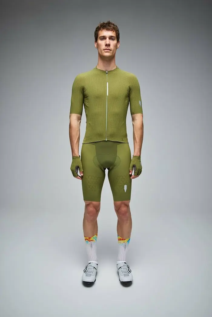 Les modèles emblématiques : Dottore Pro et Gregarius Pro Maillot Dottore Pro Le maillot Dottore Pro incarne l’évolution ultra-légère et aérodynamique de la gamme Q36.5, conçu pour une polyvalence maximale sur une large plage de températures. La version homme arbore une coupe inspirée des combinaisons de contre-la-montre, avec une construction sans coutures apparentes à l’avant, tandis que sa coupe ajustée assure un maintien optimal. Fabriqué à partir d’un tissu exclusif tissé en 3D intégrant du fil d’argent, ce maillot offre une excellente dissipation de la chaleur, un séchage rapide, une grande légèreté et une protection optimale. Il est ainsi idéal pour les longues sorties par temps variable et les descentes exigeantes, sans nécessiter de couches supplémentaires. La version féminine conserve les mêmes caractéristiques techniques, avec une coupe et un ajustement spécifiquement conçu pour la morphologie féminine, garantissant confort, stabilité thermique et aérodynamisme optimal. La version Dottore Pro Research Scientist arbore le logo « Radar » de Q36.5, imprimé à l’encre réfléchissante, symbolisant l’engagement de la marque à fournir aux athlètes un outil de pointe pour affronter les conditions de pratique les plus exigeantes.