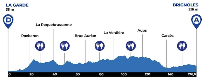 Le peloton s’élancera de La Garde, entre Toulon et Hyères, avant de mettre le cap vers le nord en direction de Brignoles pour 176,6 km.