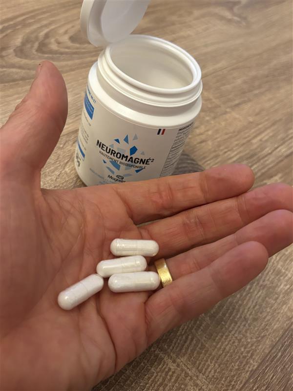 Le Neuromagné² : 4 gélules par jour. La recommandation officielle propose de les répartir en deux prises, matin et soir, afin de lisser l’apport sur la journée. Dans notre usage réel, nous avons choisi de les prendre en une seule fois le soir, 30 à 45 minutes avant le coucher. Cette option s’est révélée particulièrement cohérente avec l’objectif recherché : favoriser la récupération nerveuse nocturne, améliorer l’endormissement et la qualité du sommeil.