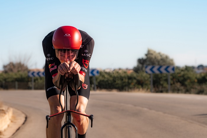 La géométrie particulière à la pratique de contre-la-montre s’adapte aux besoins de positionnement du cycliste, pas l’inverse.