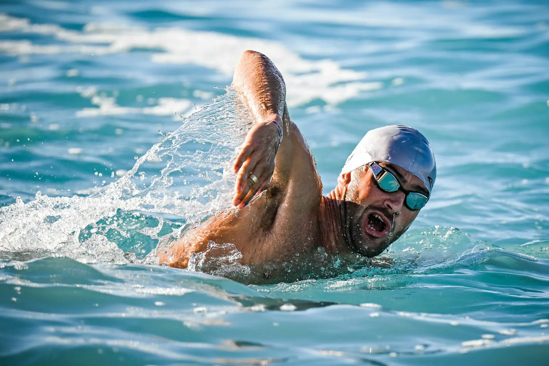 Les verres foncés SW4, prévus pour les sessions en extérieur, se sont montrés bien adaptés : pas d’éblouissement face au soleil d’autant plus dans un bassin orienté plein sud, tout en restant suffisamment clairs par temps couvert. Le revêtement miroir réduit efficacement les reflets sans gêner la lecture du terrain. C’est bien dosé.
