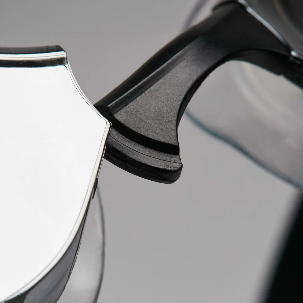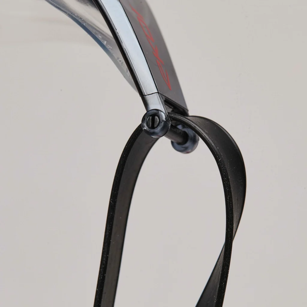 Côté conception, la monture mise sur l’essentiel : un joint en TPR ergonomique (un matériau hybride entre caoutchouc et plastique) assure la bonne tenue sans marquer le visage, tandis que le système de double sangle doit permettre un serrage précis. Trois ponts de nez interchangeables sont fournis pour adapter le fit à chaque morphologie.