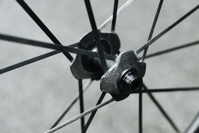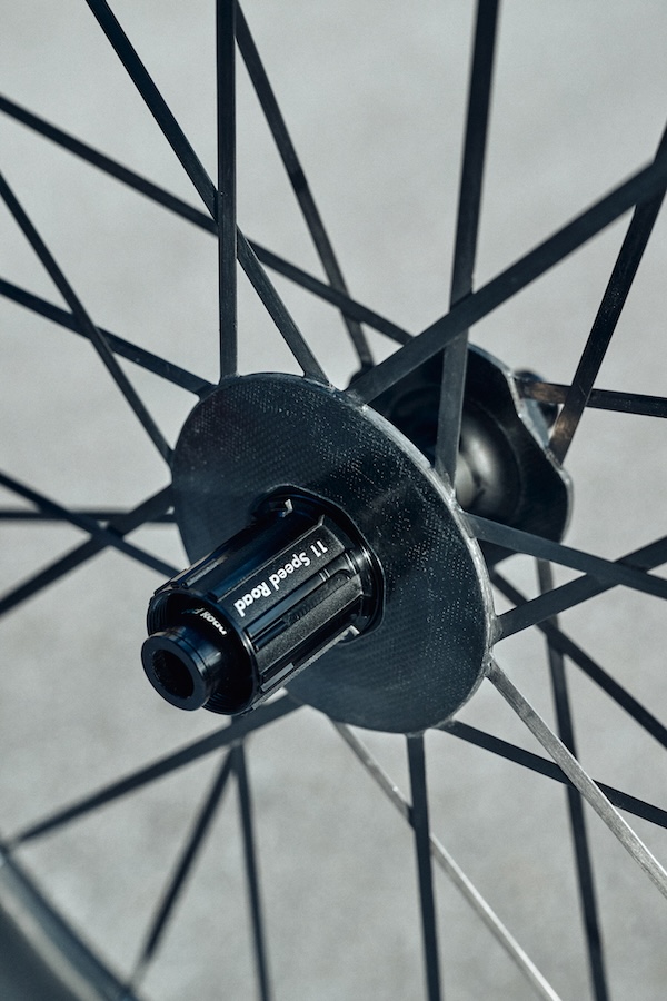 Le travail débute au cœur du système avec un moyeu avant aérodynamique CADEX et un moyeu arrière CADEX R3 intégrant un mécanisme à rochet de 48 dents, gage d’un engagement rapide et direct. L’ensemble est associé à une technologie de rayonnage carbone Max Super Aero intégrée au moyeu. On compte 16 rayons à l’avant et 24 à l’arrière, avec un montage Dynamic Balanced Lacing destiné à équilibrer les tensions en dynamique et à garantir une précision de pilotage maximale sous contrainte. La promesse est claire : optimiser la transmission de puissance tout en limitant la traînée.