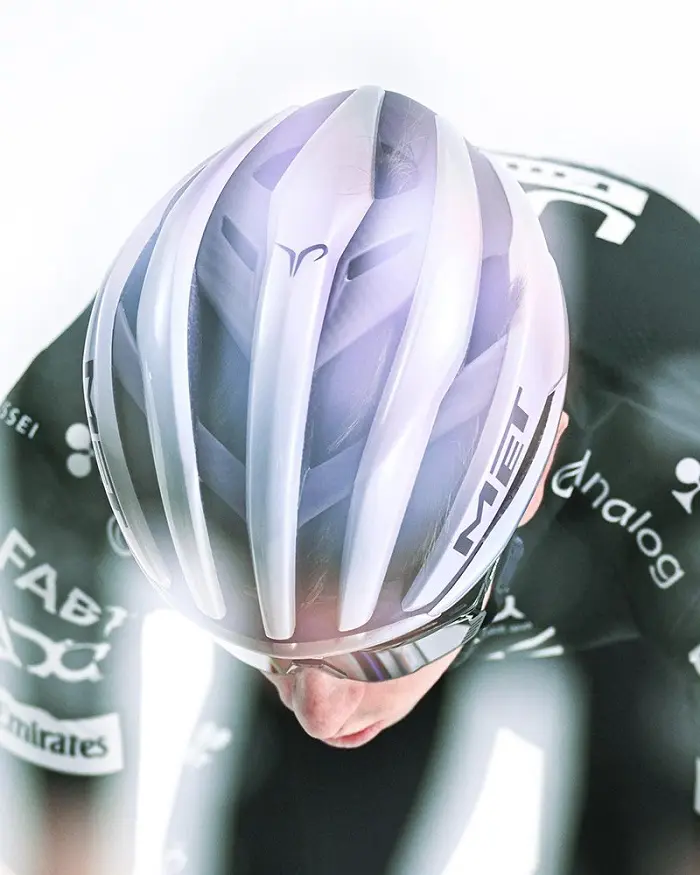 MET présente une édition limitée 2026 de ses casques Trenta 3K Carbon et Manta, créée en collaboration avec Tadej Pogačar. Cette collection célèbre son statut de double champion du monde avec une finition iridescente inspirée du mouvement et de la fluidité. Elle traduit la notion de « superfluidité », cet état où maîtrise, aisance et performance semblent naturelles. Les deux modèles reprennent les casques utilisés par Pogačar au plus haut niveau, avec un design unique rendant hommage à son style. Disponibles en édition limitée, les casques sont proposés à partir de 280 € pour le Manta et 440 € pour le Trenta 3K Carbon.