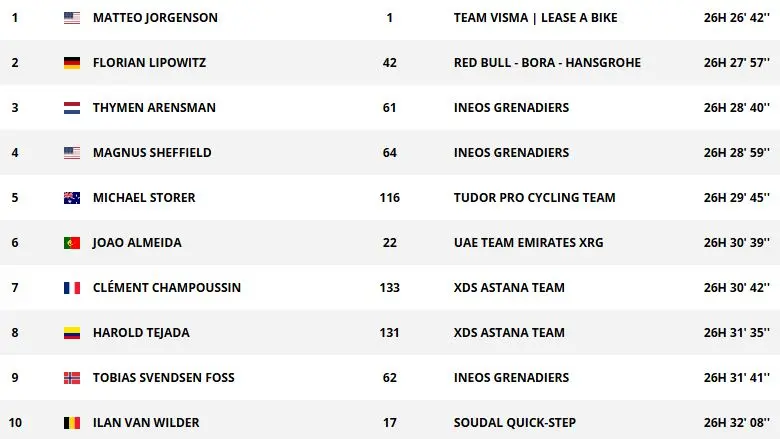 Les vainqueurs des maillots et classements en 2025