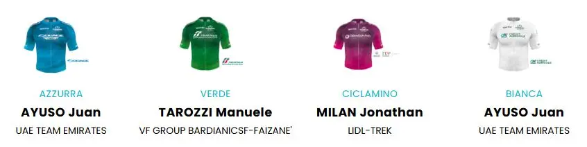 Les vainqueurs des classements et maillots de Tirreno-Adriatico 2025