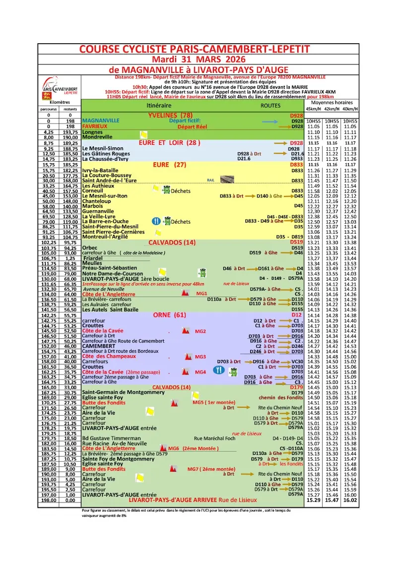 Les horaires de passage de Paris-Camembert 2026