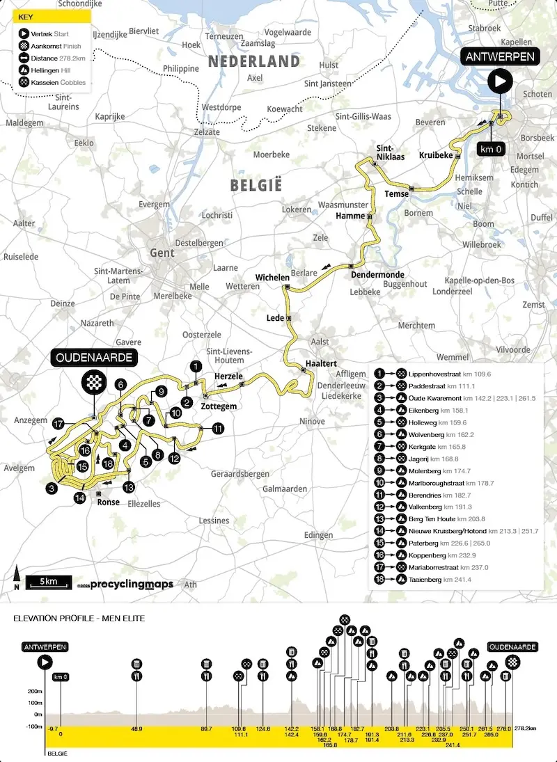 Le profil et la liste des monts du Tour des Flandres 2026