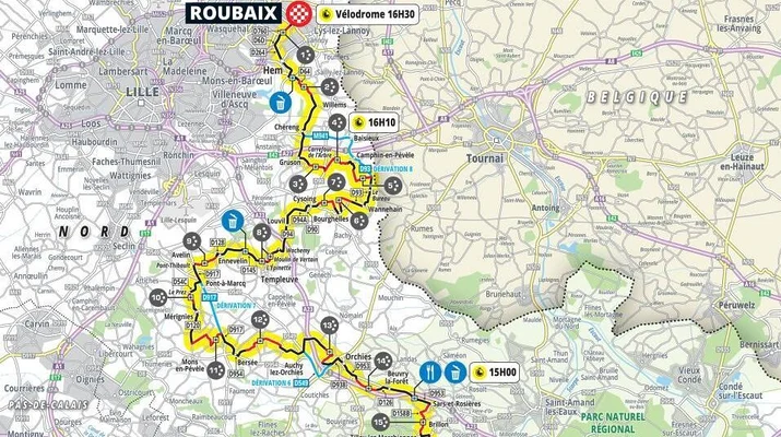 La carte du parcours de Paris-Roubaix 2026