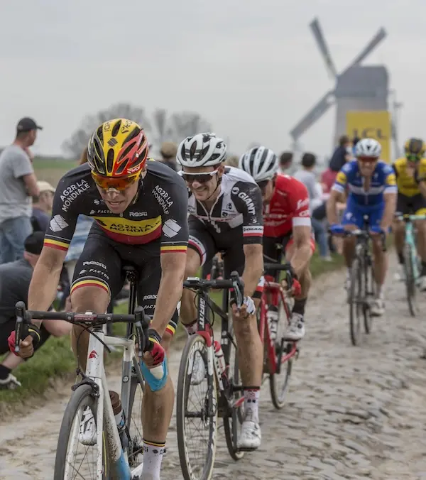 Les bases arrière s’affinent, les tiges de selle deviennent plus flexibles, et des modèles spécifiques pour Paris-Roubaix apparaissent. L’objectif est d’absorber les vibrations sans sacrifier l’efficacité. Dans le même temps, les coureurs osent utiliser des roues carbone à jantes hautes pour la première fois sur ce type de course. Preuve de la fiabilité désormais reconnue de ce matériau autant que de la nécessité de rechercher le moindre gain d’aérodynamisme.