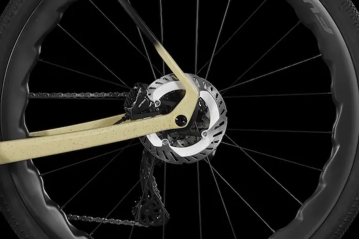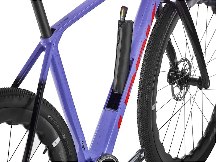 LOOK a mis l’accent sur la capacité d’adaptation du vélo. Le G85 Cezal accepte des pneus larges (jusqu’à 57 mm à l’avant et 50 mm à l’arrière) pour améliorer l’adhérence et le confort. Il peut également accueillir une fourche suspendue offrant jusqu’à 60 mm de débattement, une caractéristique encore rare sur ce segment.