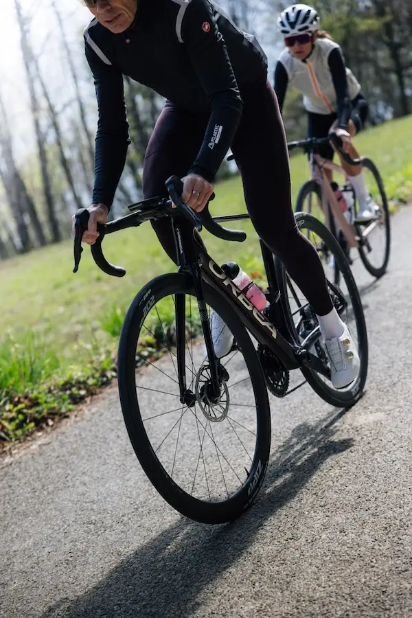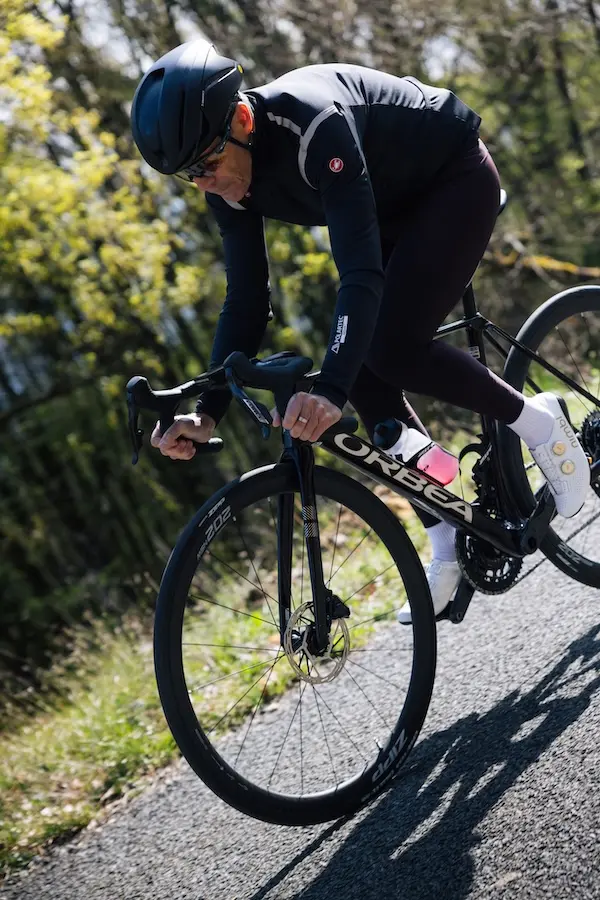 Cela se confirme lors des séances de sprint, où j’oublie totalement que j’évolue sur des roues de moins de 1 100 g. À chaque démarrage violent, le vélo dans son ensemble réagit promptement, mais sans faiblir. Je ne suis même pas certain, d’ailleurs, que sur le plan aérodynamique à haute vitesse, la différence d’efficacité avec des roues plus hautes soit réellement significative. En tout cas, je ne peux pas la mesurer moi-même.