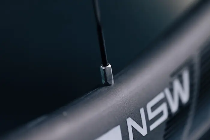 Dans cette logique, l’appellation 202 renvoie à une longue tradition de roues à faible hauteur de jante, pensées à l’origine pour les grimpeurs et les parcours montagneux. Quant au label NSW, pour Nest Speed Weaponry, il désigne le sommet du savoir-faire de la marque, réservé aux produits les plus avancés technologiquement, presque sans compromis. À ce sujet, passons tout de suite à ce qui fâche : le prix. À 3 800 € la paire, nous sommes en présence d’un produit archi-exclusif, réservé à une clientèle très pointue. Une clientèle qui devra accepter, pour ce tarif, l’absence de rayons carbone (alors qu’ils se généralisent chez la concurrence, au moins à ce niveau de prix) et un look extrêmement discret, notamment au niveau des moyeux. C’est cher, très cher, trop cher même sans doute. Mais autant le dire tout de suite, c’est le seul grief que je vais pouvoir avancer pour critiquer ces roues, par ailleurs assez exceptionnelles.