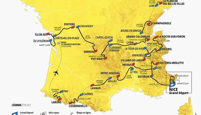 3 473,2 kilomètres sur 21 étapes de Nice à Paris, un unique contre-la-montre individuel de 36 kilomètres la veille de l’arrivée et des ascensions en nombre pour une édition très montagneuse et […] Lire la suite →