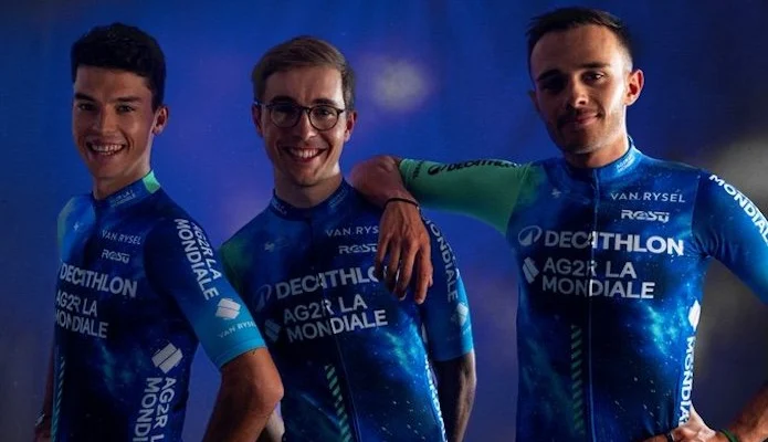 L’équipe Decathlon AG2R La Mondiale Team a présenté ses vélos Van Rysel et ses nouvelles tenues fournie par Decathlon pour 2025. Les coureurs utiliseront le Van Rysel RCR-R
