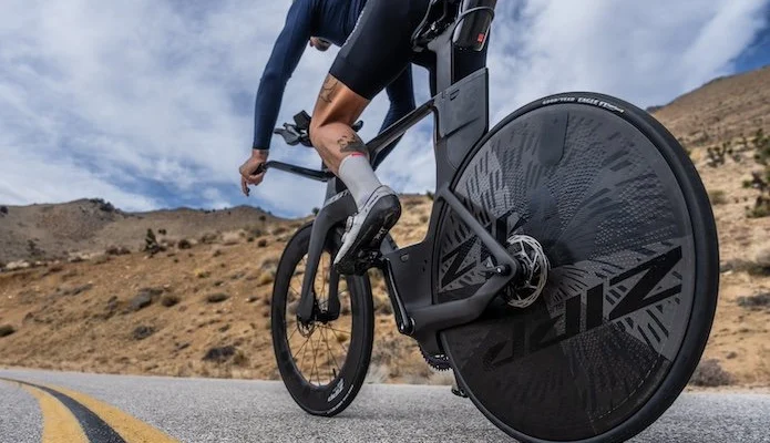 Zipp propose une nouvelle roue lenticulaire, la Super-9, déclinée en deux versions, pour la route et prévue pour un frein à disque, et pour la piste.