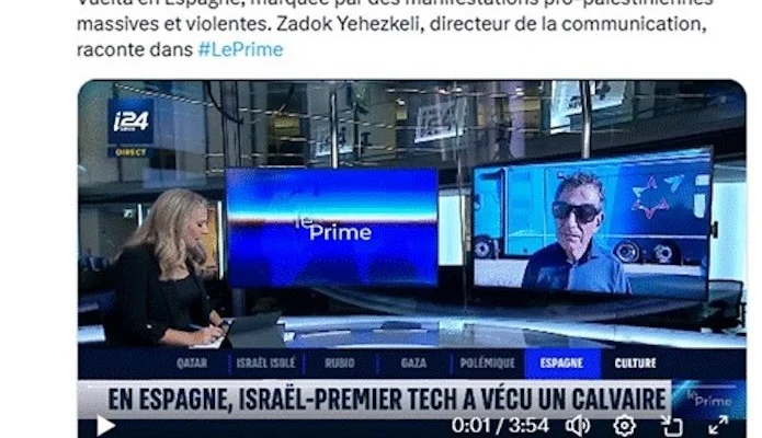 Lors de son passage au Prime sur i24NEWS hier soir, Zadok Yehezkeli, directeur de la communication d’Israël Premier Tech, est revenu sur les graves incidents qui ont émaillé la Vuelta 2025.