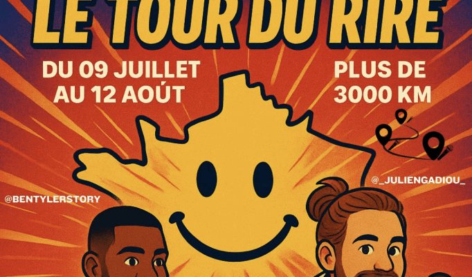 Deux humoristes français, Julien Gadiou et Ben Tyler, se lancent dans une aventure inédite : le Tour du Rire de France en Vélo. Ce projet ambitieux combine une