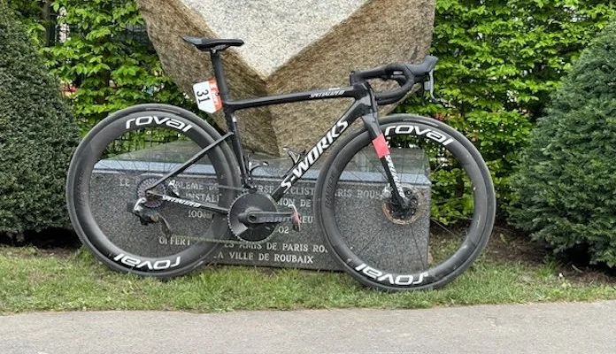 Le vélo de la championne du monde Lotte Kopecky (SD Worx), vainqueure de Paris-Roubaix femmes