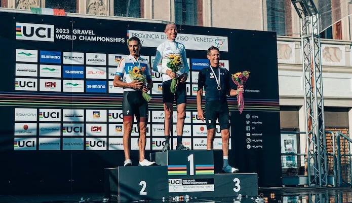 Matej Mohoric a été sacré champion du monde de Gravel Elite, ce dimanche 8 octobre à Pieve di Soligo (Italie). Le Slovène s’est imposé devant le Belge Florian Vermeersch et le Britannique […] Lire la suite →