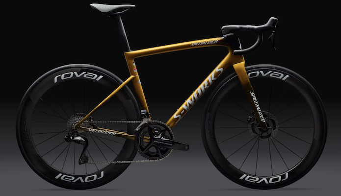 Alors que Specialized célébrait son 50e anniversaire en 2024, Remco Evenepoel bouclait une saison historique. Pour immortaliser cette incroyable année, Specialized a recouvert d’or le S-Works Tarmac SL8
